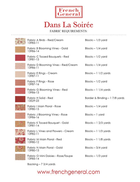 French General QUILT PATTERN Dans La Soiree G FG JV003